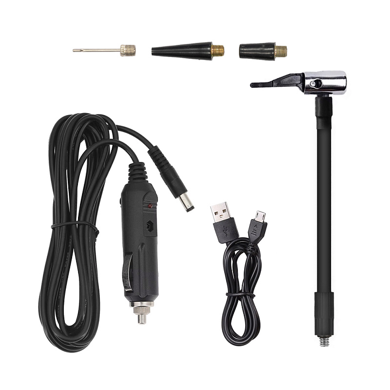 Комплект насадок, провод зарядки от автомобильного прикуривателя, провод зарядки Micro USB, воздушный шланг Комплект насадок, провод зарядки от автомобильного прикуривателя, провод зарядки Micro USB, воздушный шланг